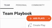Team Playbook - While new plays are not automatically added to the team playbook, your can initiate the creation of a new play from the team playbook by hitting the drop-down on the + ADD PLAYS action button and then selecting Create Play.