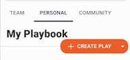 Personal Playbook - The personal playbook is the official home of any plays created by an individual user. From the Personal Playbook, just hit the + CREATE PLAY action button.
